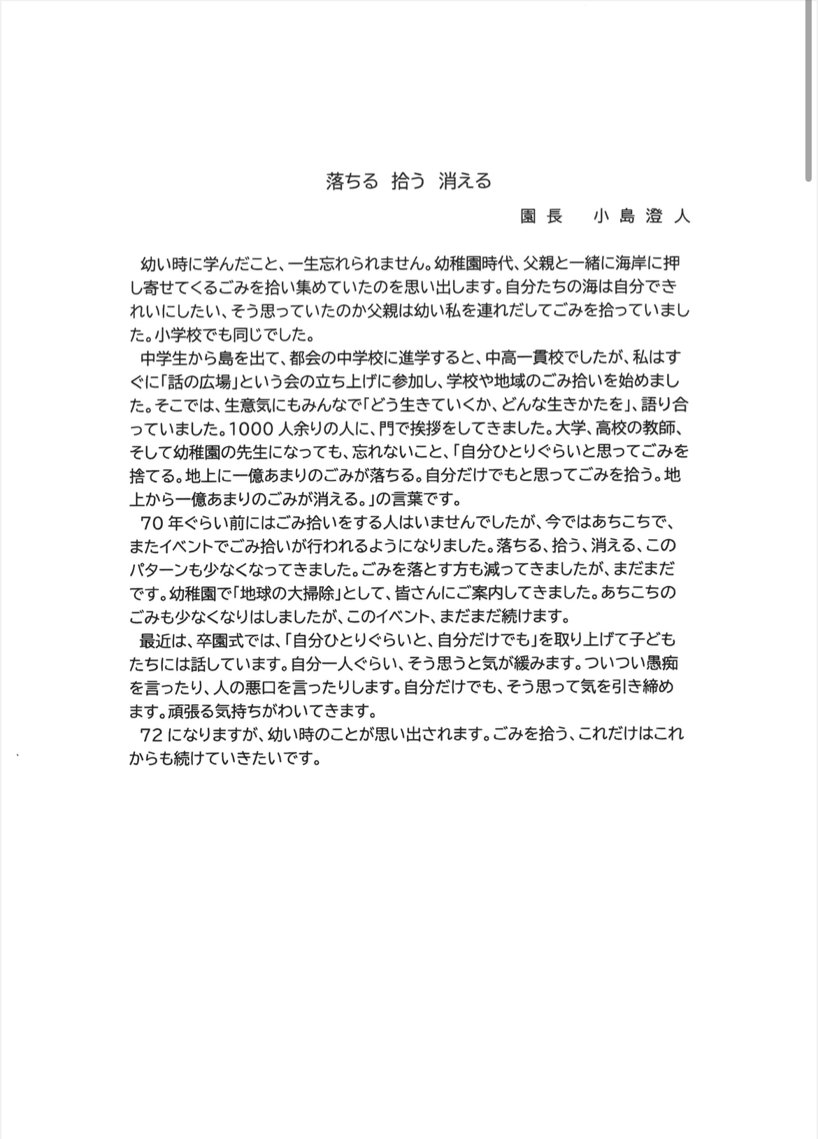 | 2014年4月 | 幼稚園単独型認定こども園認可 理事長・園長 小島 澄人 |